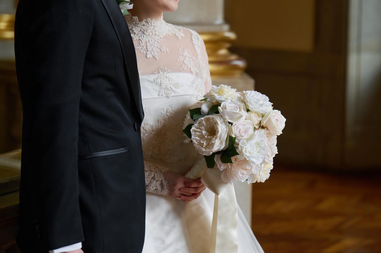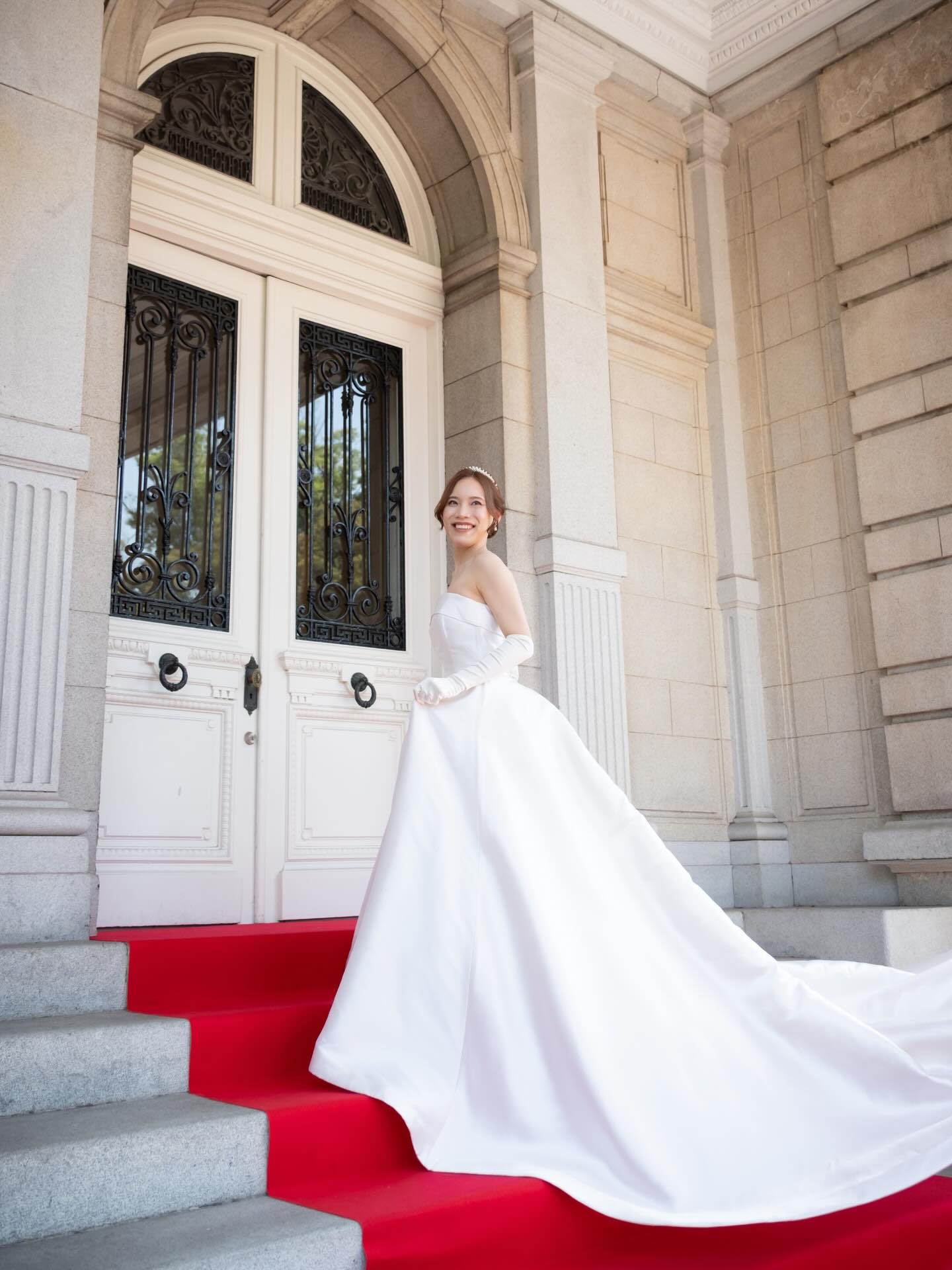 オルガンザの普遍的なデザインのドレスは大聖堂チャペルや歴史ある建物など荘厳な空間でプリンセスのような存在感を放ちます。
